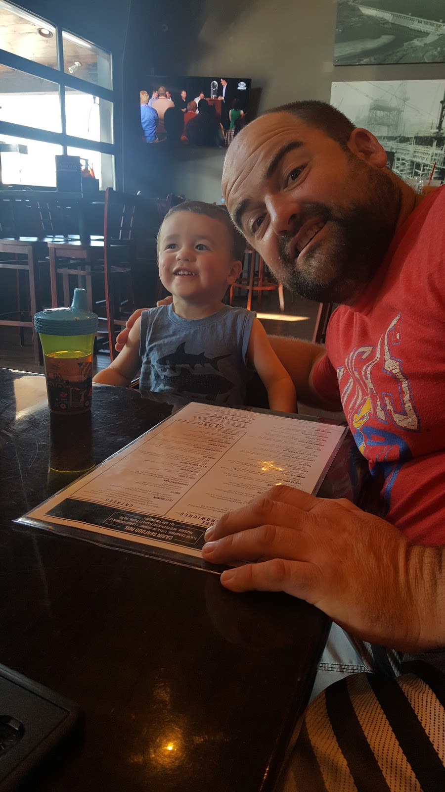 We went to dinner at Tucker Shuckers. I absolutely love this place. Jackson has a waitress or two he is chasing so we had to go back! Pictures with daddy are the best.These two are pretty much best friends. Jackson sure does love his daddy. Jackson was helping Matt pick out something to eat. Above Jackson saying "cheese!" He always straightens up and has such a big smile.